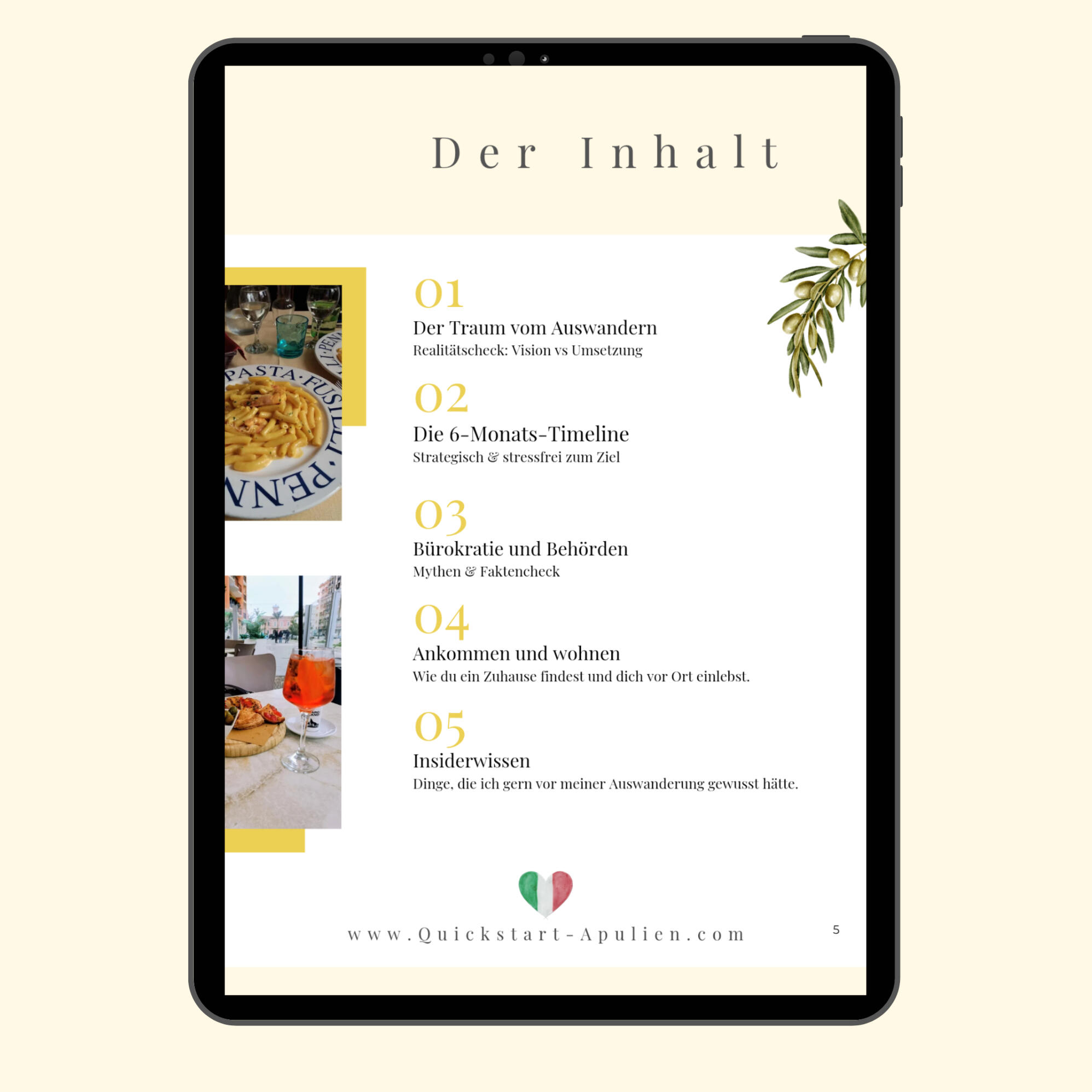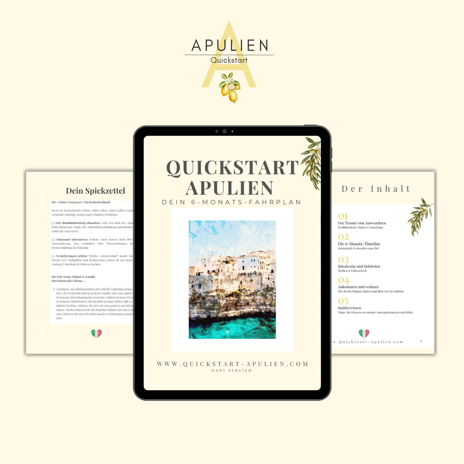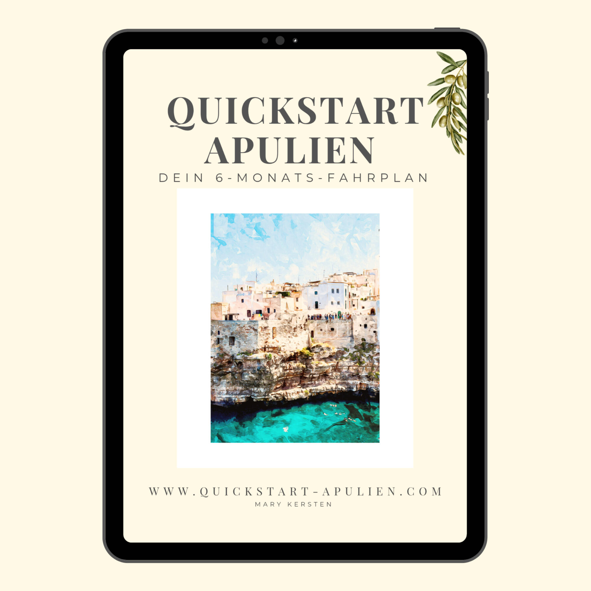 Ciao, ich bin Mary🍋 Als ich den Entschluss fasste, nach Apulien auszuwandern, stand ich vor einem Berg aus Bürokratie, widersprüchlichen Infos und Sprachbarrieren. Ich habe viel Lehrgeld bezahlt. Damit deine Auswanderung in den Süden entspannt und sicher gelingt, habe ich den Apulien-Quickstart geschrieben. Kein langes Gerede, sondern die Essenz meiner Erfahrung: Die Timeline, die wichtigsten Kontakte und Insiderwissen, das dich deinem Ziel näher bringt. Für weniger als den Preis einer Pizza (4,99 €) sparst du dir Wochen an Recherche und schützt dich vor den teuersten Fehlern. Ci vediamo in Puglia☀️